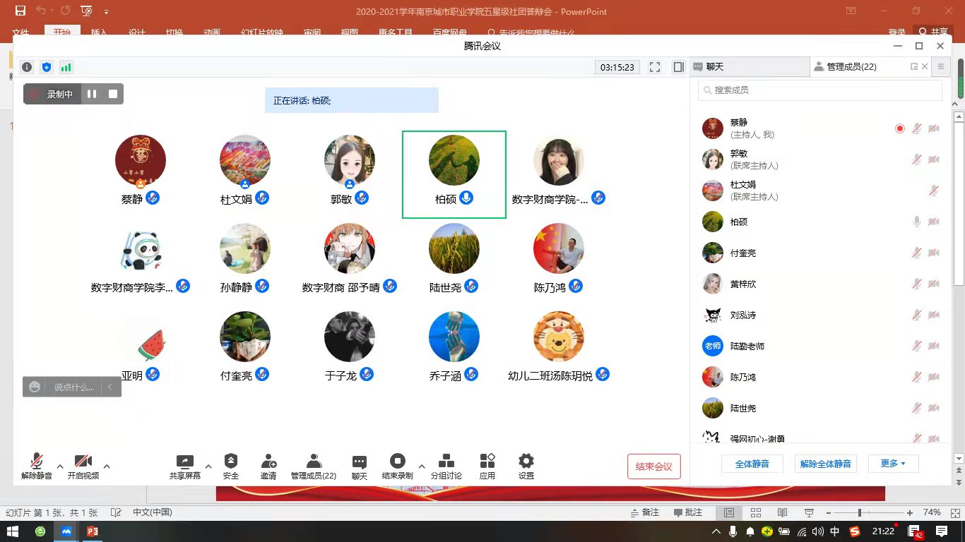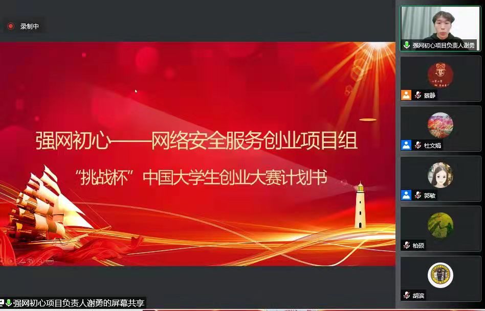 “101-智慧青春养老人”“赋能乡村建设,振兴红色旅游”“康启家”“强网初心-网络空间安全服务”“跨境良才”五个项目依次进行了线上PPT汇报,柏老师根据每个项目不同的情况指出了各自存在的问题,各项目指导老师也与柏老师积极交流互动。
