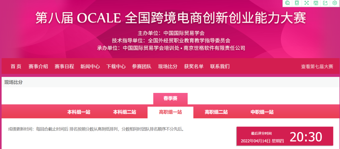 2022年4月12日-14日,数字财商学院21级国际商务专业丁凯、陈许鑫、21级跨境电子商务专业高慧、张佳骏、张嘉慧、陈学文、胡小芳、沈钰莹、周蕊、曹杰、毛雨飞、申俊杰同学在指导老师王倍、滕静涛的带领下,组成4支队伍,代表我校参加了第八届OCALE全国跨境电商创新创业能力大赛(春季赛),我校4个代表队与来自全国573所高职院校的代表队展开角逐,荣获4项团体二等奖的好成绩。