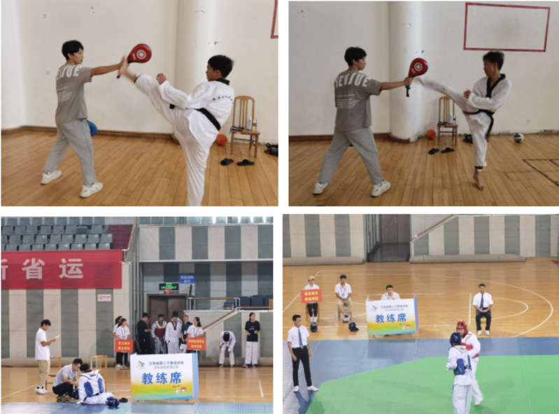 江苏省第二十届运动会高校部跆拳道(乙组)比赛于8月3日至8月7日在江苏师范大学举行,全省28所高职院校参赛。我校代表队由公共教学部副主任巴佳慧、支部副书记孙宇担任领队,体育教研室党员教师吴宾、张之海老师担任教练员,率领5名运动员出征。数字财商学院阳朝晖同学和康养工程学院钱子豪同学力克强敌,均取得第五名的历史最好成绩。