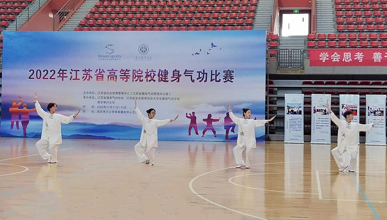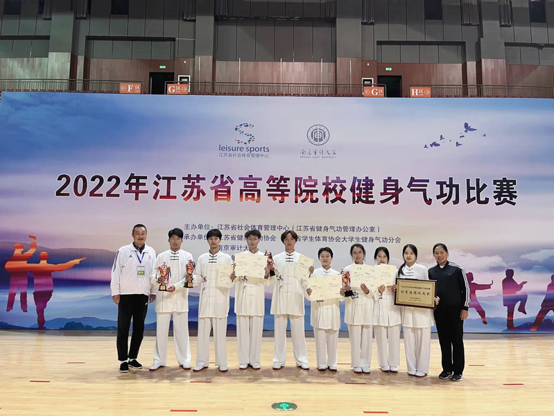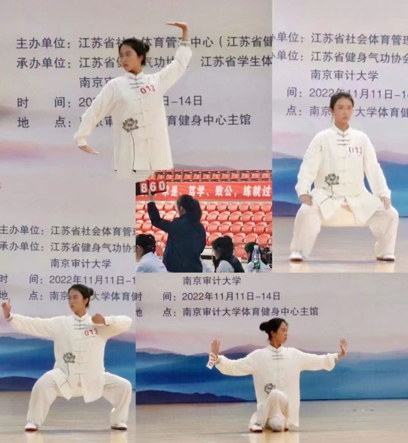 本次赛事由江苏省社会体育管理中心主办,江苏省健身气功协会、江苏省学生体育协会大学生健身气功分会、南京审计大学承办,是江苏省大学生体育系列赛事之一。比赛首日,我校两队参加的集体项目,以扎实的功底、超水平的发挥,获得4个三等奖。随后的比赛,在8个单项的个人赛中发挥稳定,其中,王应姿同学在八段锦普及功法女子个人赛(24人),以8.60分夺得第四名;徐若桐同学获得五禽戏普及功法女子个人赛第七名、大舞第八名;王宇杰同学获五禽戏普及功法男子个人赛第八名。