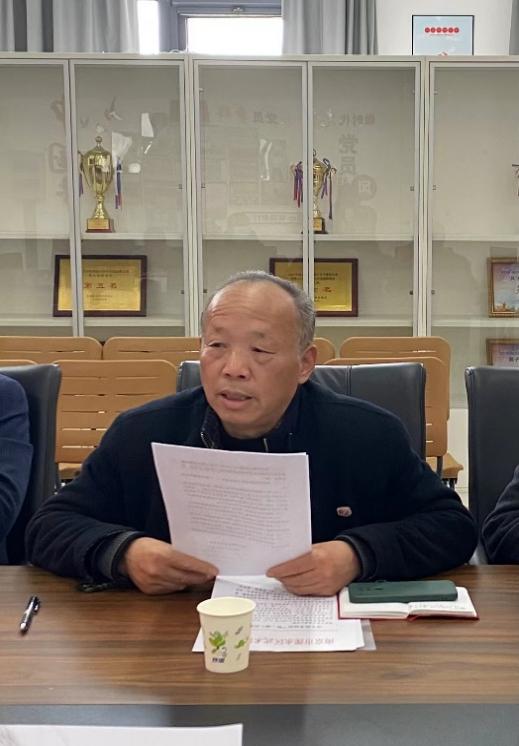 溧水区武术协会会长黄烈隆介绍了溧水区武术协会发展历史与现状,提出2023年主要工作计划和内容,表示希望进一步加深协会与学校的交流与合作,能借助学校民族传统体育项目的优势,做好区域太极拳、健身气功等为主要的各类培训和赛事活动,建立合作共建机制,共同推动溧水区群众性武术运动的发展。