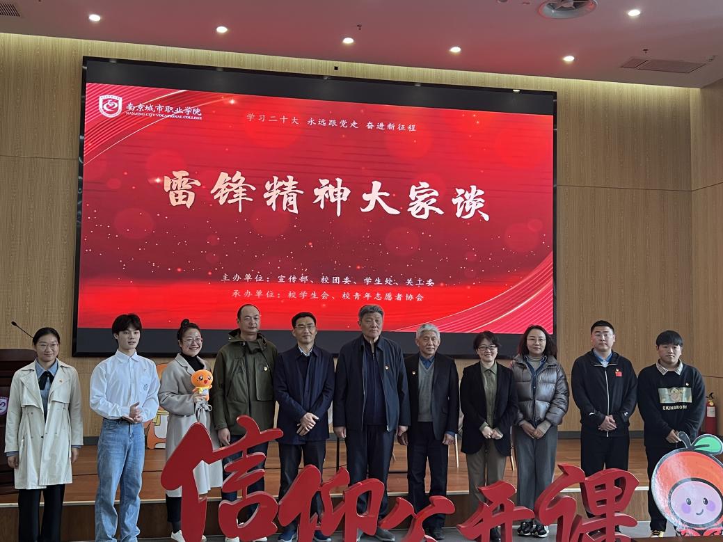 今年是毛泽东等老一辈革命家为雷锋同志题词60周年。为深入学习宣传贯彻党的二十大精神和习近平总书记关于学雷锋志愿服务工作的重要指示精神,积极培育和践行社会主义核心价值观,引导全校青年志愿者以实际行动书写新时代的雷锋故事,3月31日中午,我校宣传部、校团委、学生处和关工委在溧水校区办公楼报告厅联合主办了“雷锋精神大家谈”主题活动。校关工委常务副主任路业、副秘书长黄滨,校党委副书记史献平,校党委委员、宣传部部长朱小蔚,校党委委员、智能工程学院党总支书记、院长力志,校团委书记杜文娟、副书记柴黄洋子,党员志愿者代表、公共教学部教师孙伟及校、院两级学生会全体成员、校青年志愿者协会志愿者代表参与此次活动。