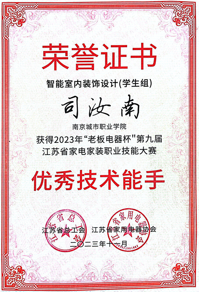 由省总工会、省家用电器协会主办的2023年第九届江苏省家电家装创新职业技能大赛近日落下帷幕。6月份我校举办了分校区初赛,总决赛于11月份在南京工业大学浦江学院举行。今年的智能室内装饰设计项目,刷新了4个记录,报名人数最多,有5000多人;参与单位最广,近60个单位加入;单项目分赛区最多,共10个;经三重选拔、参赛选手的竞争最为激烈。